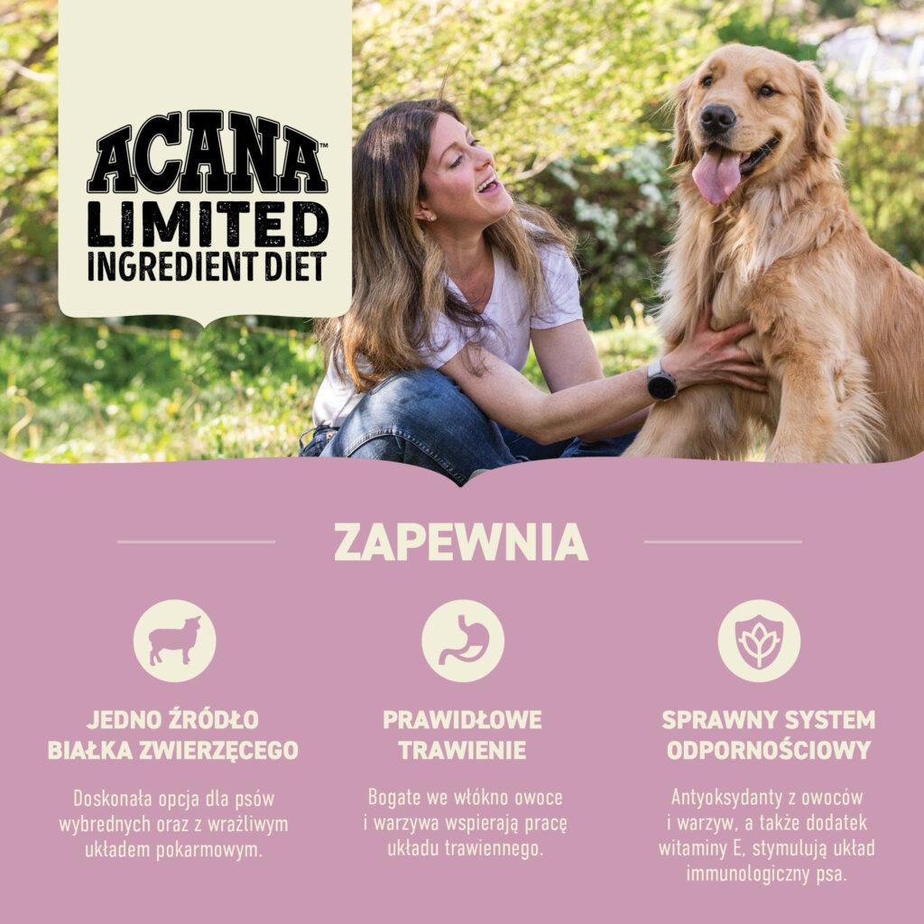 ACANA Grass-Fed Lamb monobiałkowe jedzenie dla psów wrażliwych.