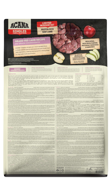ACANA SINGLES Grass-Fed Lamb to doskonałe jedzenie dla psów w każdym wieku, z wyjątkiem szczeniąt dużych ras. Podobnie jak Ty Twój pies jest wyjątkowy, dlatego też jego zapotrzebowanie na pożywienie może różnić się w zależności od środowiska, wieku i aktywności.