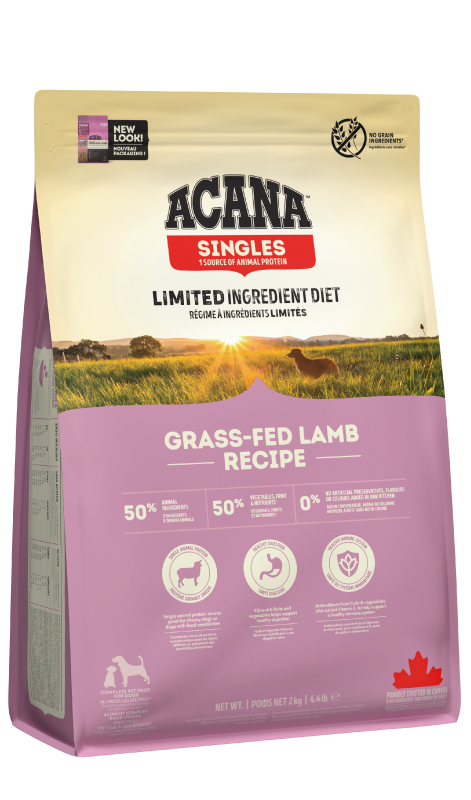 Bezzbożowa ACANA SINGLES Grass-Fed Lamb to karma monobiałkowa, która zawiera 50% jagnięciny, będącej źródłem łatwo przyswajalnego białka zwierzęcego. Idealne rozwiązanie dla psów wrażliwych wszystkich ras, w każdym wieku*.