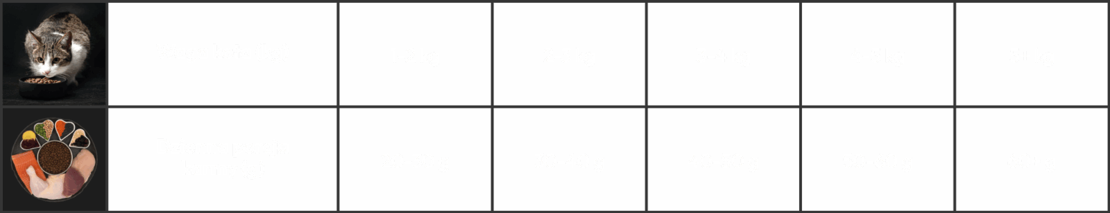 *Każdy kot jest inny, dlatego przedstawione zalecenia należy dostosować do indywidualnych potrzeb, biorąc pod uwagę rasę, wiek, temperament i poziom aktywności danego kota. Przy zmianie karmy, nowy produkt należy przez pierwsze dwa tygodnie wprowadzać stopniowo. Kotu należy zapewnić stały dostęp do świeżej wody. Karma bez dodatku zbóż. Może zawierać śladowe ilości, ponieważ w fabryce używane są zboża. Przechowywać w chłodnym, suchym miejscu. Najlepiej wykorzystać przed: data, numer partii i numer rejestracyjny producenta z tyłu opakowania.