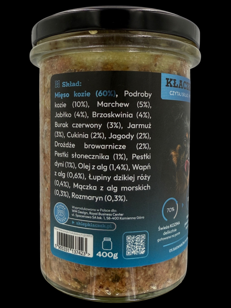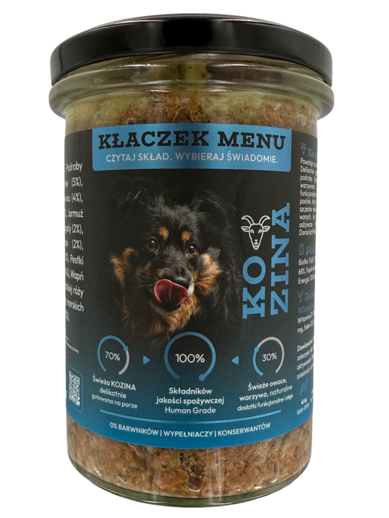 Kłaczek Menu Kozina to doskonały wybór dla psów potrzebujących naturalnego i lekkostrawnego żywienia oraz dla opiekunów, którzy chcą podawać
