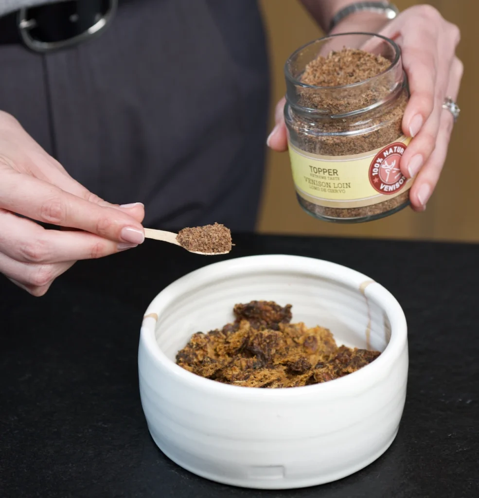 Krótko mówiąc, Venison Topper to prosty i naturalny sposób na dodanie smaku, tekstury i urozmaicenia do codziennej diety Twojego psa lub kota, dzięki prawdziwym składnikom i formatowi zaprojektowanemu dla Twojej wygody.