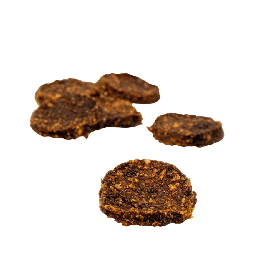 Burgery z królika SANADOG z jabłkiem i jarmużem to przysmak dla Twojego psa, wyprodukowany z czystego, wysokiej jakości mięsa króliczego i zdrowej super żywności. Są one produkowane w naszym zakładzie, bez dodatków takich jak kukurydza, pszenica, soja, barwniki, konserwanty, mączka mięsna czy inne wypełniacze, i są delikatnie suszone na powietrzu. Nasza technologia suszenia na powietrzu to nowoczesna interpretacja wielowiekowych technik konserwowania mięsa.